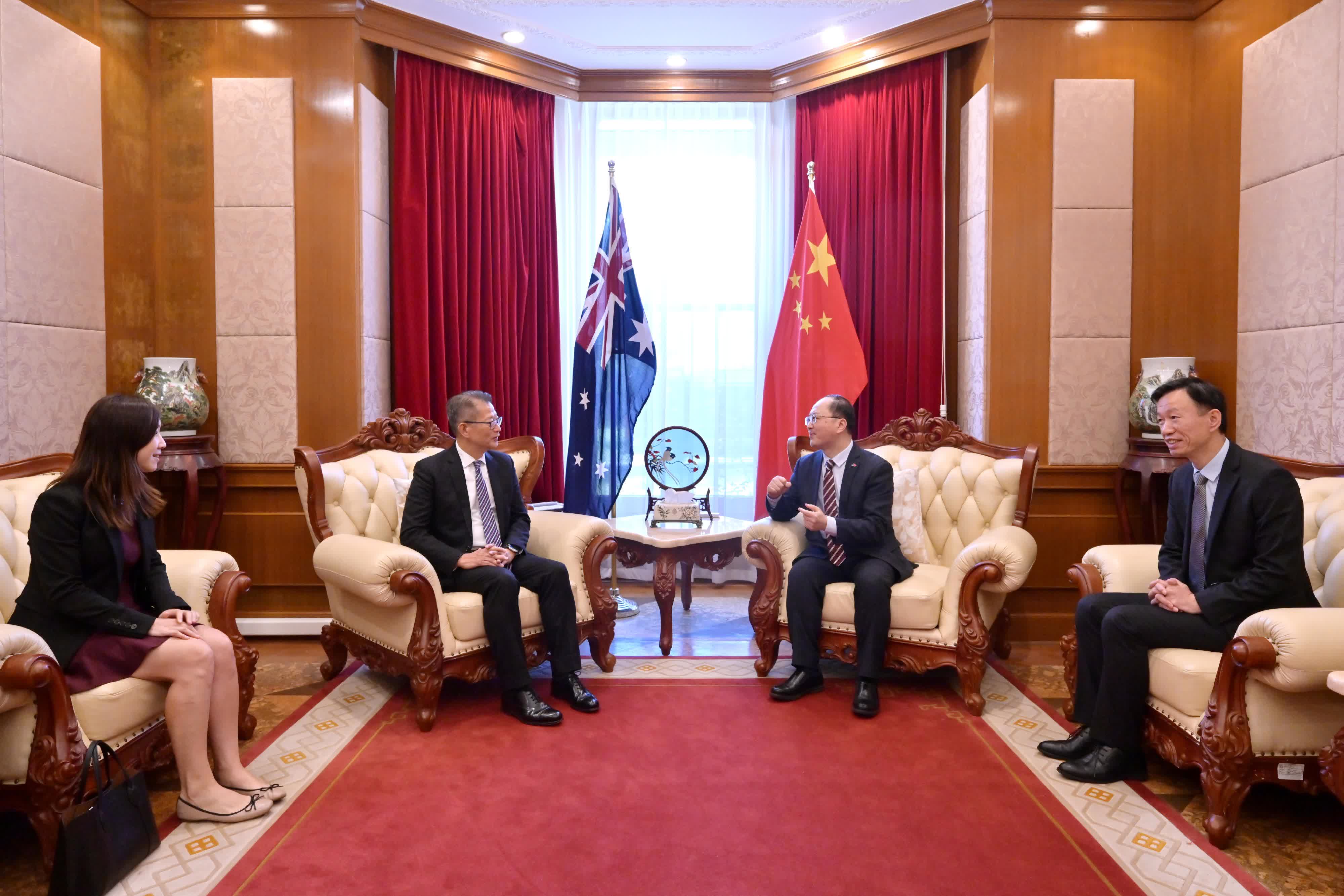 陳茂波其後拜會了中國駐墨爾本總領事房新文,介紹香港最近的發展情況,雙方也就中澳關係、促進香港以至整個粵港澳大灣區與澳洲合作等議題交換意見。