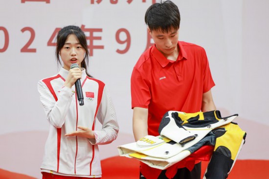 在“体育力量 青春榜样”引领行动中,奥运健儿纷纷捐赠出“心爱之物”,有的是跟随自己百赛千战的训练装备,有的则是见证高光时刻的纪念物件。比如,潘展乐捐赠了巴黎奥运会夺冠时的签名泳帽,黄雨婷则捐赠了夺得首金时的射击比赛服。