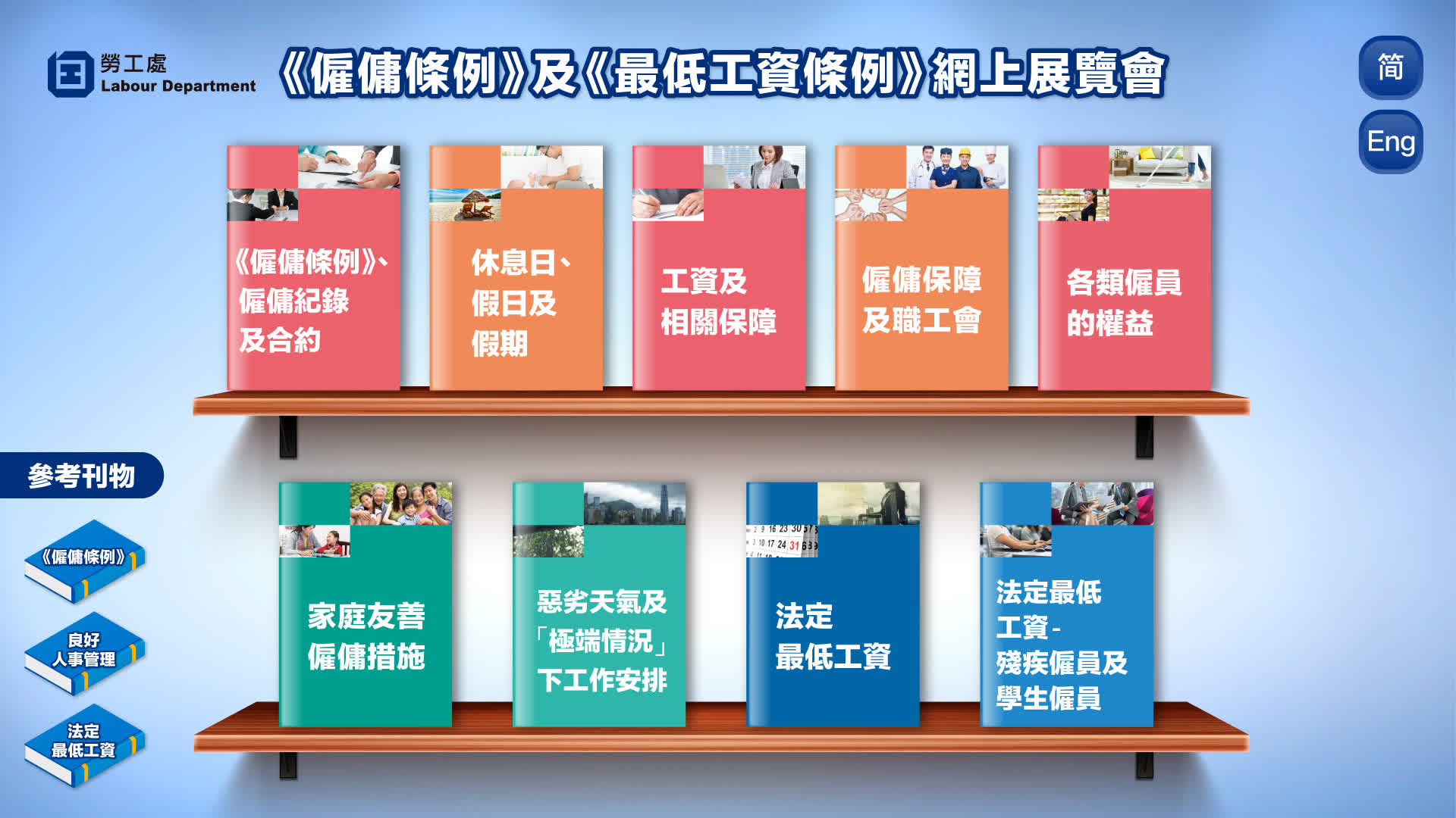 網上展覽整合了勞工處實體展覽的內容,介紹《僱傭條例》及《最低工資條例》的主要條文、外籍家庭傭工的僱傭權益和福利,以及良好人事管理措施。詳情可點擊網站。