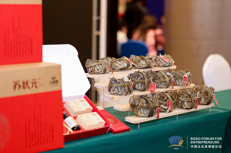 苏状元大闸蟹亮相2023中国企业家博鳌论坛现场