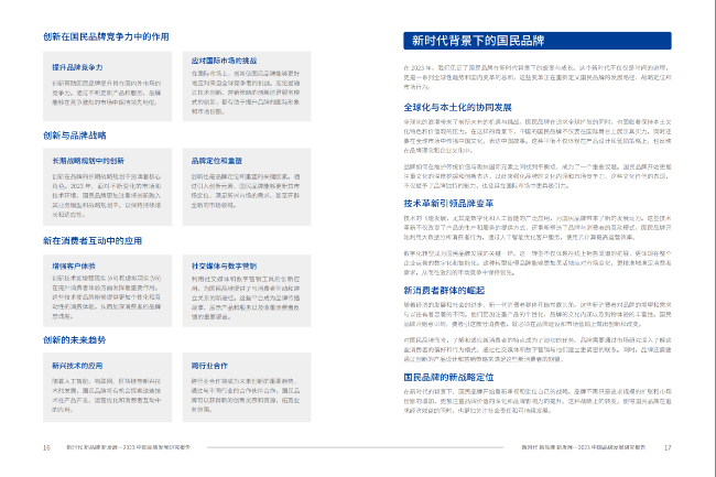 《报告》深度剖析了中国品牌创新发展的现状、特点、挑战与机遇。通过对2023年度中国品牌创新发展的研究,为品牌建设提供了理论支持和实践指导。