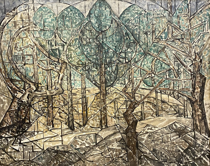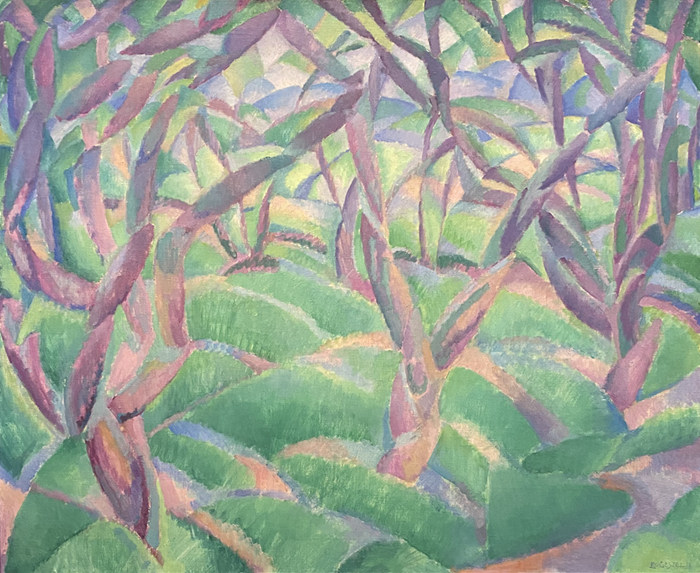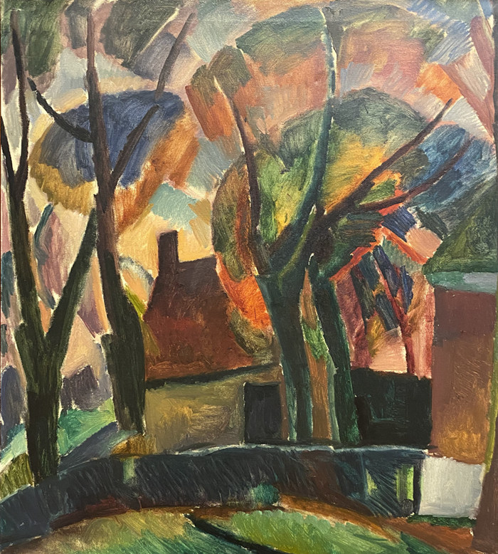 利奥·盖斯特尔画下立体主义《果园》的1913年,雅格巴·凡·希姆斯凯克也绘出了立体主义的《林地》,不过画面两侧树木弯曲的线条是她未来几年表现主义的预示,雅格巴并未在立体主义停留太久。