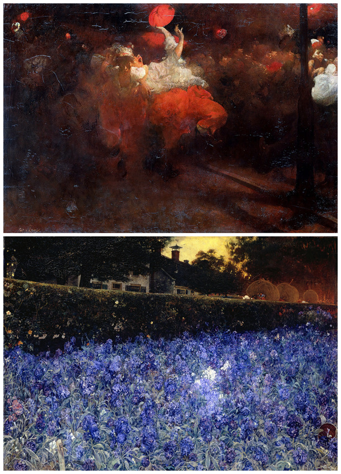 雅各布·凡·卢伊(Jacobus van Looy,1855-1930),上图:《国王节》(Oranjefest),1890-1892,荷兰国立博物馆藏品(Rijksmuseum Amsterdam);下图:《七月-夏日繁花》(July-Summer Luxuriance),1900,荷兰阿姆斯特丹市立博物馆藏品(Stedelijk Museum Amsterdam)