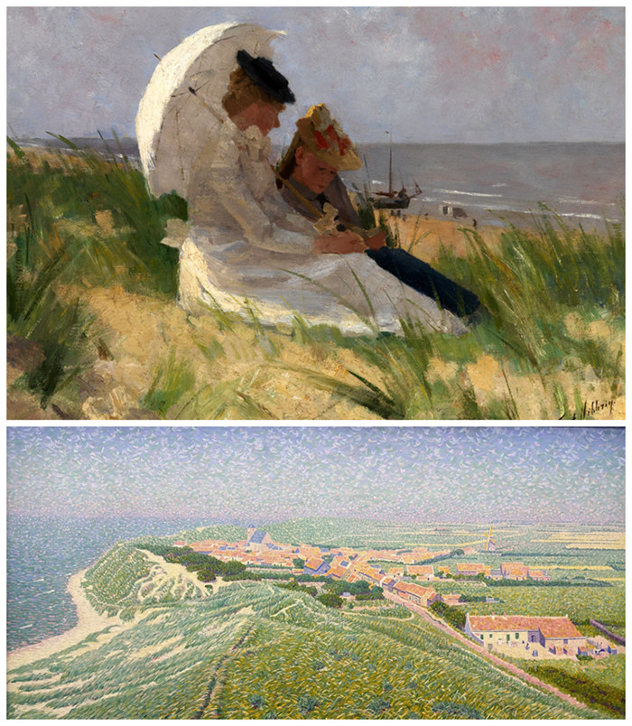 费迪南德·哈特·尼布里希(Ferdinand Hart Nibbrig,1866-1915),上图:《在赞德弗特的沙丘上》(At the Dunes,Zandvoort),1891/92,荷兰拉伦辛格博物馆藏品(Singer Laren);下图:《佐特兰德风光》(View of Zoutelande on the Island of Walcheren),1900-1912,荷兰国立博物馆藏品(Rijksmuseum Amsterdam)