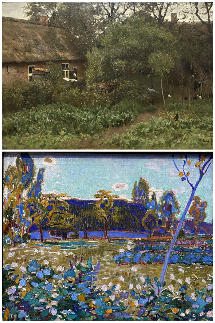 上图:《菜园》(The Vegetable Garden),安东·莫夫(Anton Mauve,1828-1888),约1885-1888,荷兰国立博物馆藏品(Rijksmuseum Amsterdam);下图:《农舍景观》(Landschaft mit Bauernhof),扬·斯莱特斯(Jan Sluijters,1881-1957),1909,荷兰拉伦辛格博物馆藏品(Singer Laren)