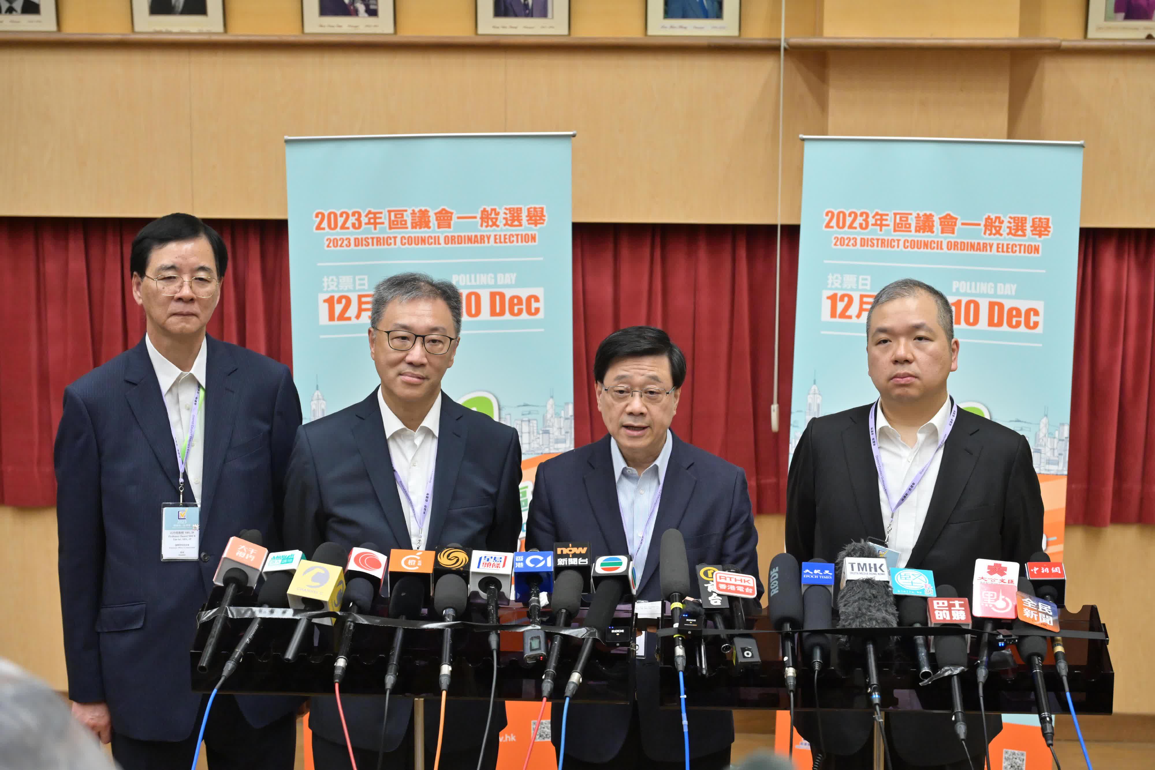 以下是行政長官李家超今日(12月11日)凌晨在皇仁書院區議會選舉點票站會見傳媒的談話全文: