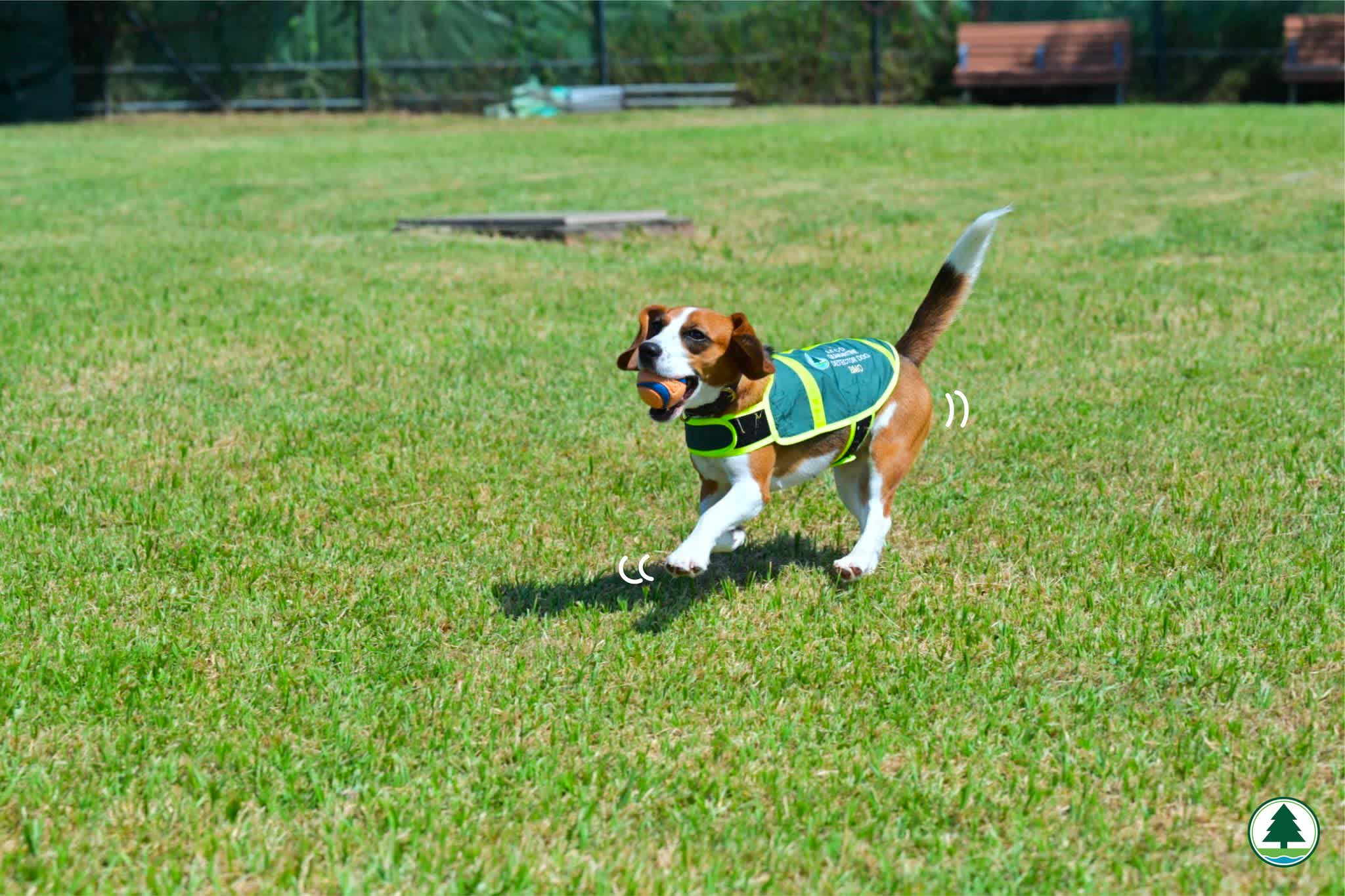 漁農自然護理署檢疫偵緝犬添新力軍!牠就是已經完成偵緝犬訓練的比格犬Bmo,並正式喺入境口岸返工喇。