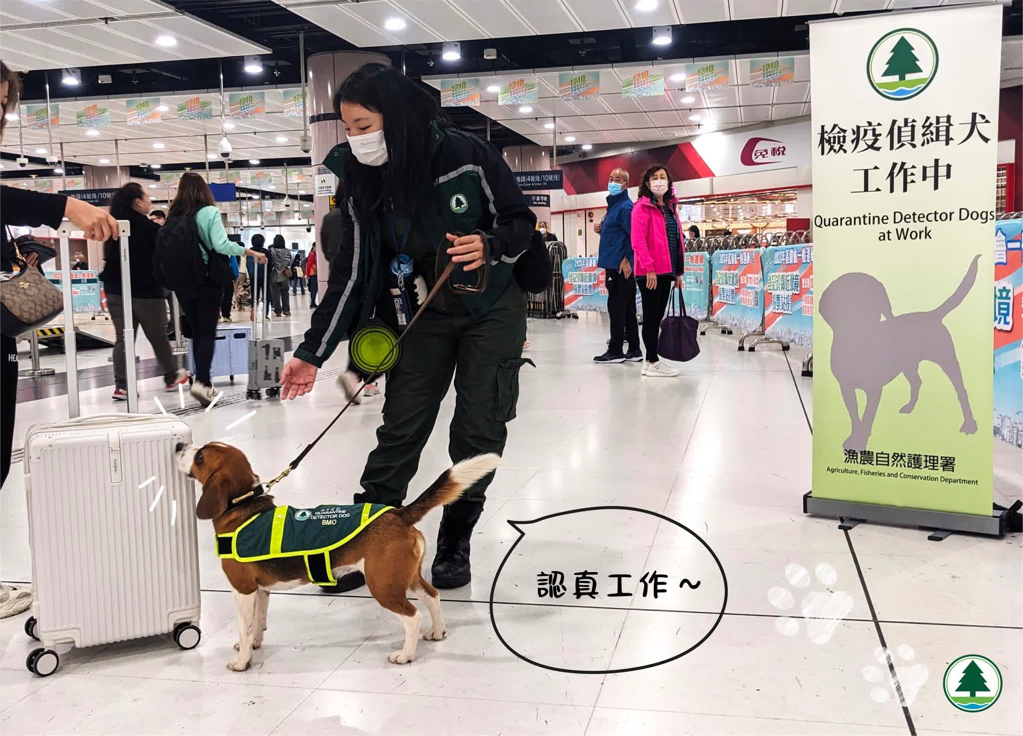 漁護署表示,署方偵緝犬會喺各入境口岸執勤,負責偵察、打擊走私檢疫物品。偵緝犬經訓練後,能夠利用嗅覺辨認受管制嘅物品,即使有關物品收埋喺行李或多層衣物入面,都難佢哋唔到㗎。