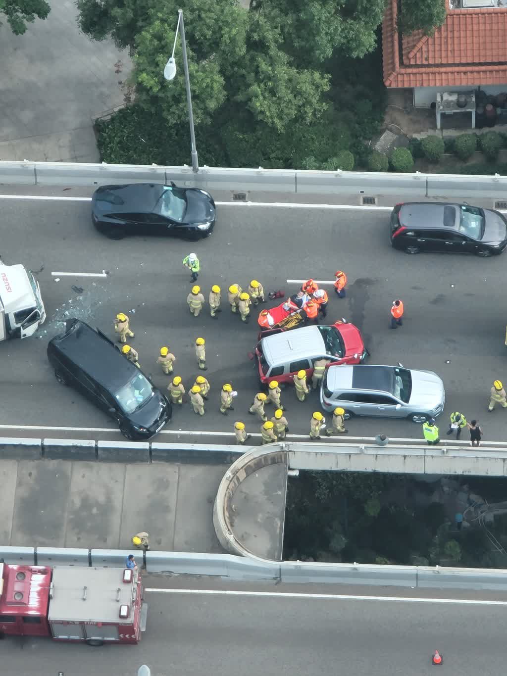 今日(11日)早上8時38分,荃灣路往九龍方向發生6車相撞意外,涉及1中型貨車、1的士及4部私家車。據現場消息,至少6人受傷。