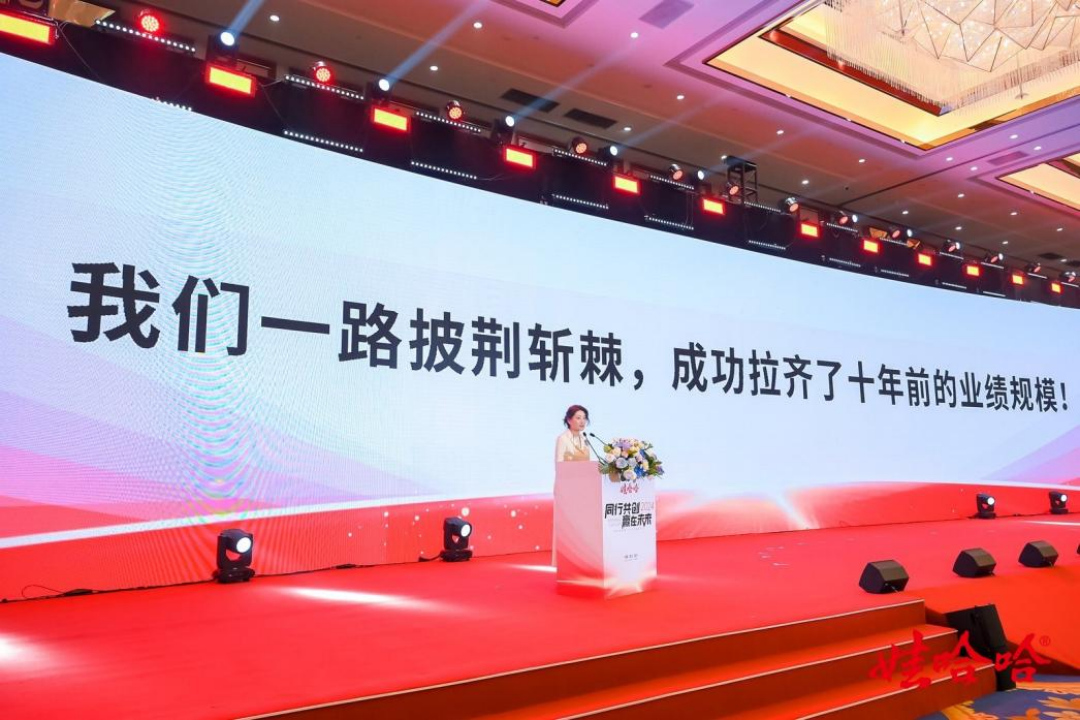 今年初,宗馥莉曾在娃哈哈集团的内部信中表示,要让所有人看得到、买得到娃哈哈的产品。本次大会是宗馥莉接任集团董事长以来召开的首次娃哈哈全国销售会议,作为娃哈哈新掌门人,她交出了执掌后的业绩答卷,2024年娃哈哈成功拉齐了十年前的业绩规模!瓶装水、AD强势增长,为今年业绩全面攀升起到了关键拉动作用;快线、茶果汁等产品也保持住了稳重有升的发展势头,赢得了更多消费者的信任与青睐。