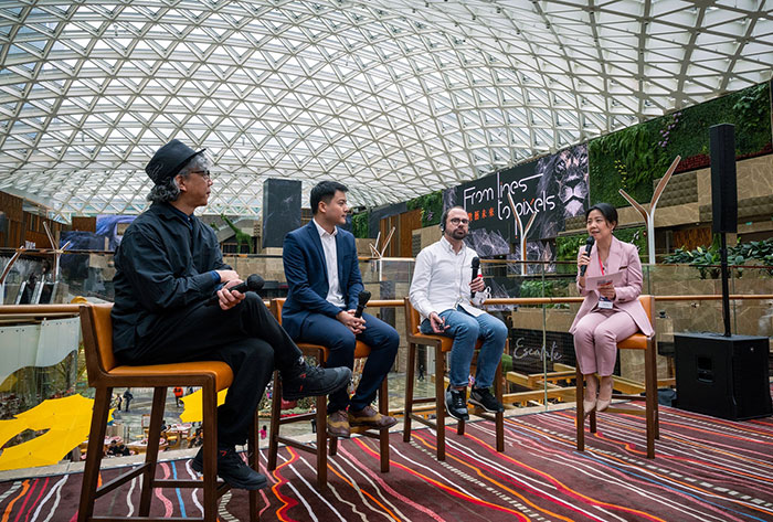 在座谈会上,霍凯盛、香港科技水墨艺术家黄宏达(Victor Wong)以及洛克威尔集团建筑设计工作室的负责人安德鲁·拉扎罗(Andrew Lazarow)就传统艺术媒介转化成数码艺术的过程、AI人工智能如何与艺术结合、数字科技如何助力艺文空间突破多元体验界限等议题展开对话,为艺术与科技的未来融合开拓全新视野。