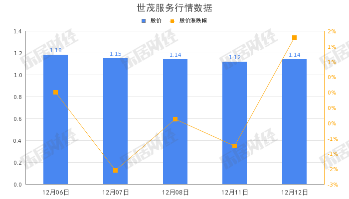 截至12月12日,世茂服务(00873.HK)股价收盘报1.12元,涨1.79%,总市值25.85亿元。