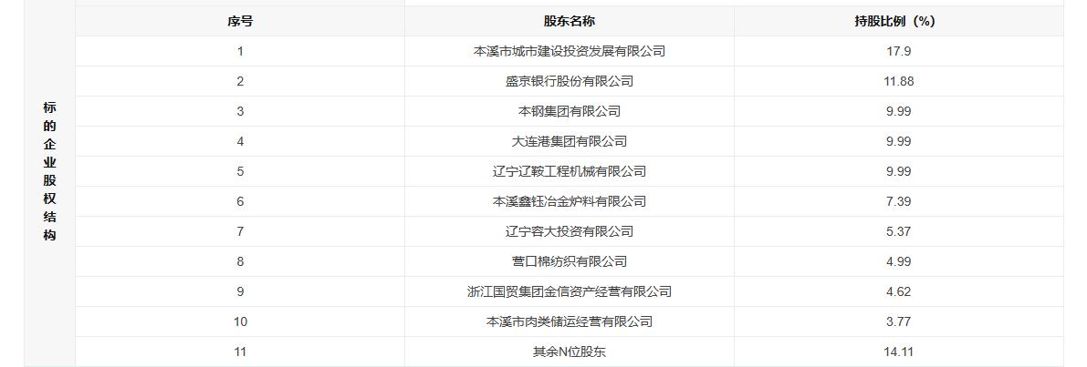 中国网财经12月12日讯 近日,上海联合产权交易所网站显示,本钢集团有限公司拟转让本溪银行股份有限公司10806.6255万股股份,占该行总股本的9.99%。根据标的基本信息中标的企业股权结构,本钢集团有限公司为该行第三大股东。