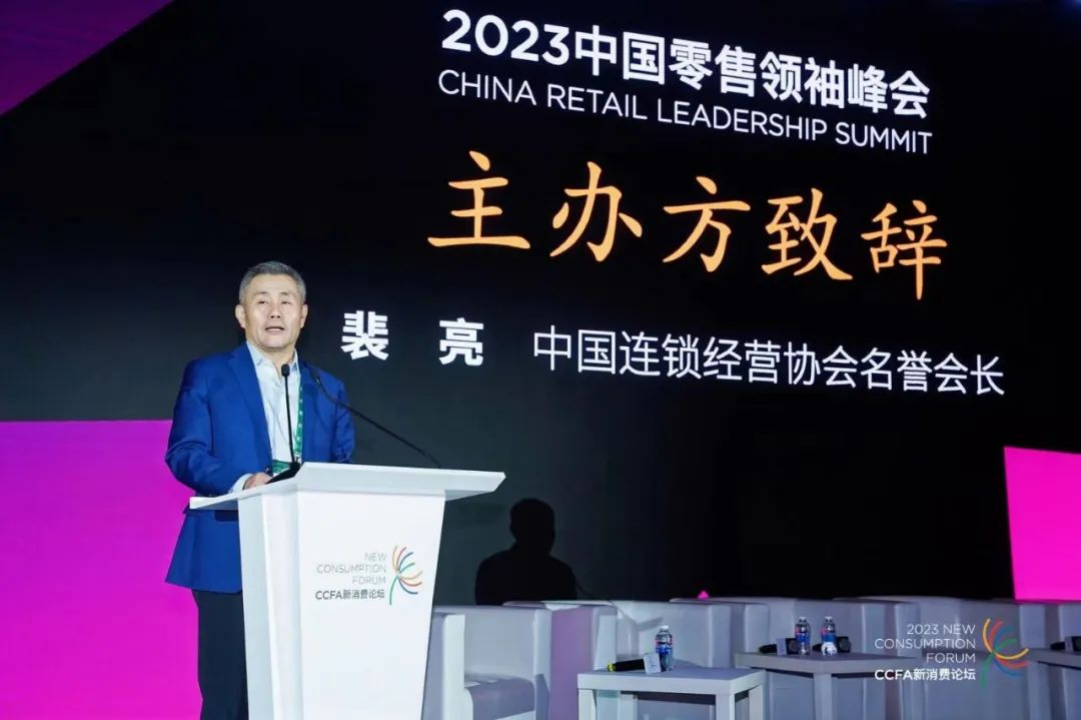 峰会伊始,中国连锁经营协会名誉会长裴亮进行题为《跨周期聚共识共商未来发展之路》致辞。