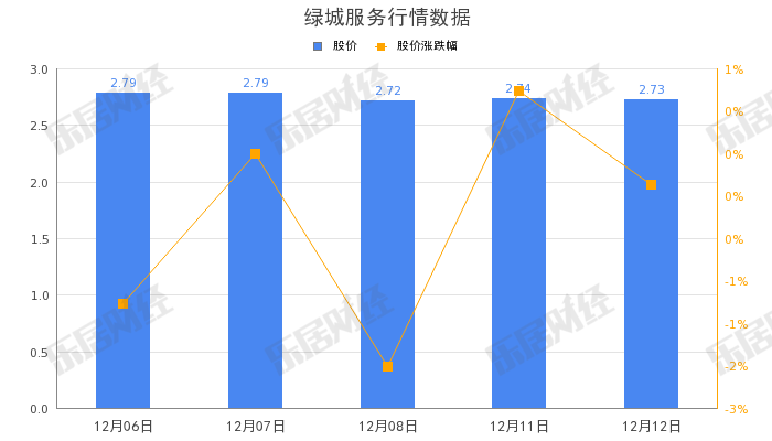 截至12月12日,绿城服务(02869.HK)股价收盘报2.74元,跌0.36%,总市值81.05亿元。