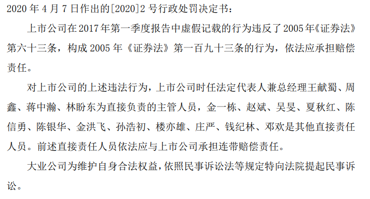 公告显示,中天服务于2023年12月15日收到浙江省湖州市中级人民法院(以下简称“湖州中院”)送达的案号为(2023)浙05民初145号涉诉材料。根据材料显示,湖州中院已受理大业信托有限责任公司(以下简称“大业公司”)诉中天服务等共16名被告证券虚假陈述责任纠纷一案。