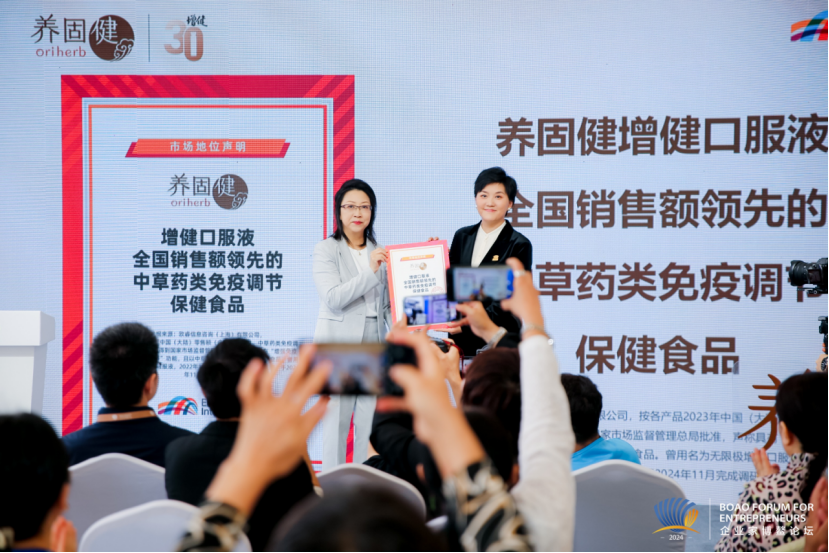 活动中,全球知名市场调研机构欧睿国际正式宣布:增健口服液2023年销售额在中国中草药类免疫调节保健食品产品中处于领先地位。这一权威认证是对养固健增健产品品质和市场影响力的有力证明,也是对养固健长期以来坚持科技创新、推动行业高质量发展的高度认可。