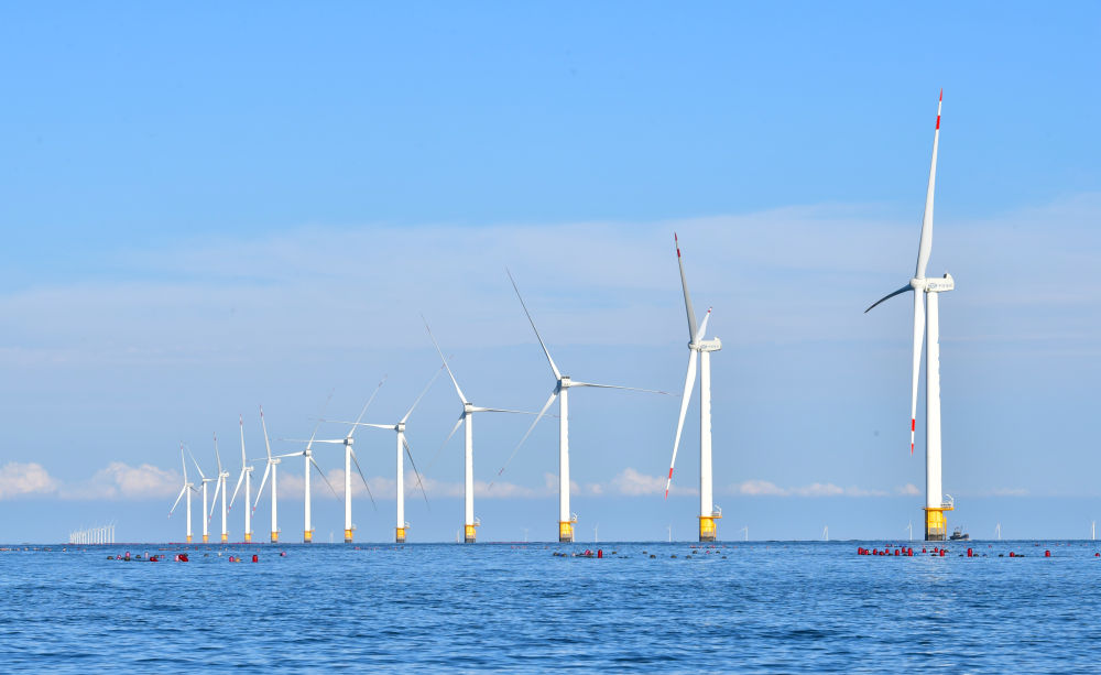 2023年9月13日拍摄的辽宁大连庄河海上风电项目。新华社记者 杨青 摄