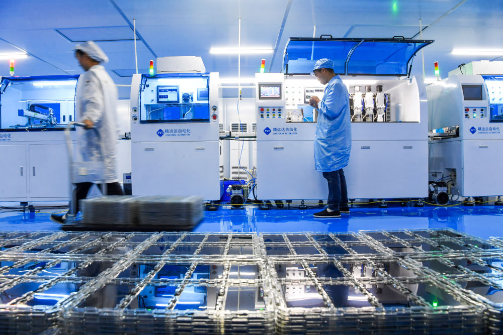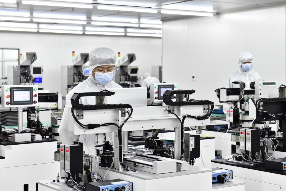2023年6月29日,在山东省日照高新技术产业开发区智慧微电产业园,工作人员在生产滤波器。新华社记者 郭绪雷 摄