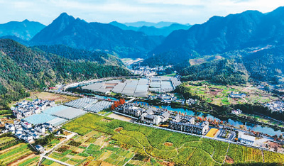 浙江下姜村入选2023年联合国世界旅游组织“最佳旅游乡村”名单,登上世界舞台。图为冬日的下姜村,绿水环绕、青山环抱,风景如画。余剑锋摄(人民图片)