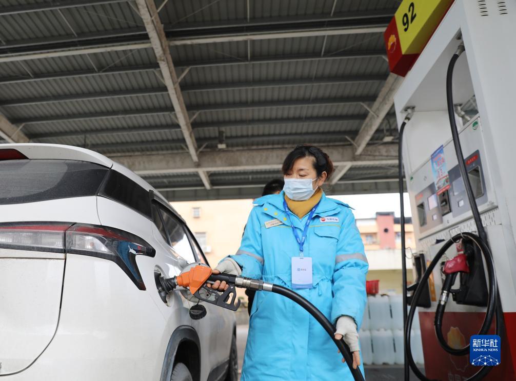 12月19日,湖南省永州市道县一加油站工作人员在给汽车加油。新华社发(何红福 摄)