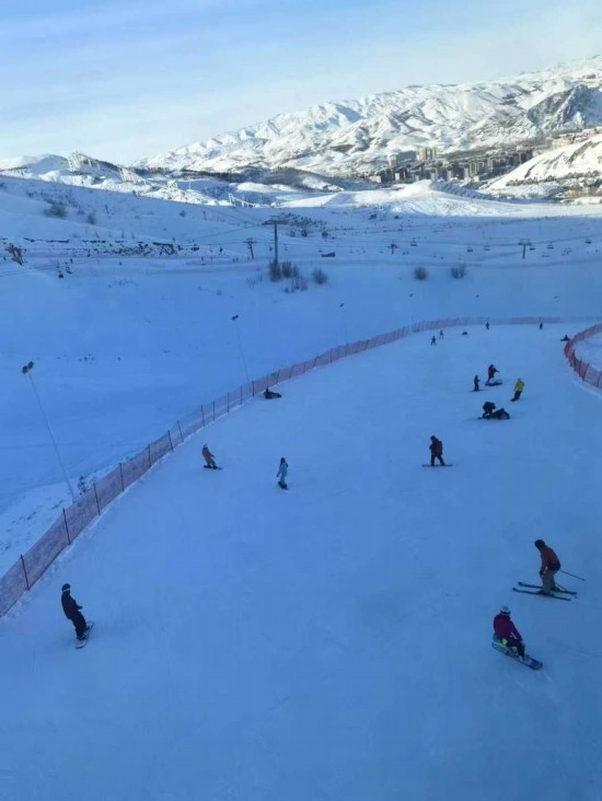 温暖的阳光下,新疆阿勒泰将军山滑雪场的粉雪闪烁着光芒,一支十几个人的队伍从远处山顶上拐着S弯疾驰而下。这是阿勒泰市第二中学初三年级的迪力亚尔·甫拉提和他的同学们,在体育老师的带领下上体育课。