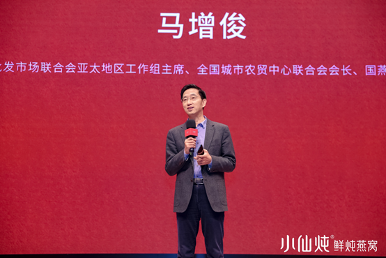 世界批发市场联合会亚太地区工作组主席、国燕委理事长马增俊现场演讲