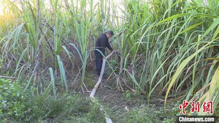 蔗农唐秀溪种植甘蔗多年,种植规模逐年扩大。今年,唐秀溪采用水肥一体化新技术种植甘蔗,根据甘蔗不同时期的生长需要,通过管线滴灌或者喷灌等方式,将肥料和水一起均匀、准确地输送到甘蔗根部土壤。