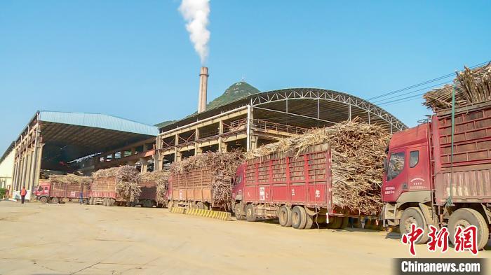 12月25日,在壮乡广西南宁武鸣区一糖厂,满载糖料蔗的车辆整齐有序地排队进厂,依次过磅、卸蔗。制糖车间里机声隆隆,压榨、制炼等工序有条不紊地运转,空气中弥漫着蔗糖的甜香味。