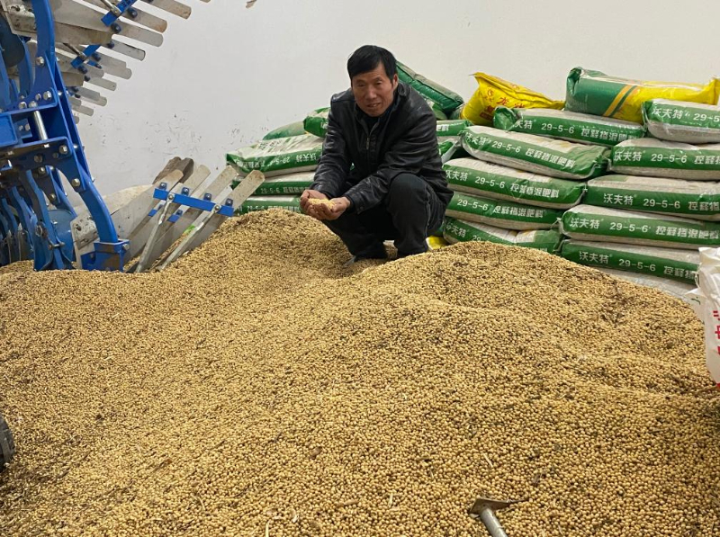 皖北的冬日,绿油油的麦苗长势良好。在安徽省宿州市灵璧县大庙镇,种粮大户陈晓伟刚从田间查看苗情返回家中。看着眼前今年收获的金黄的大豆,陈晓伟心里美滋滋的。让他颇感自豪的是,2022年他的大豆最高亩产约250公斤,而在今年秋收中,大豆最高亩产跃升到343.56公斤,打破了安徽省历史纪录。