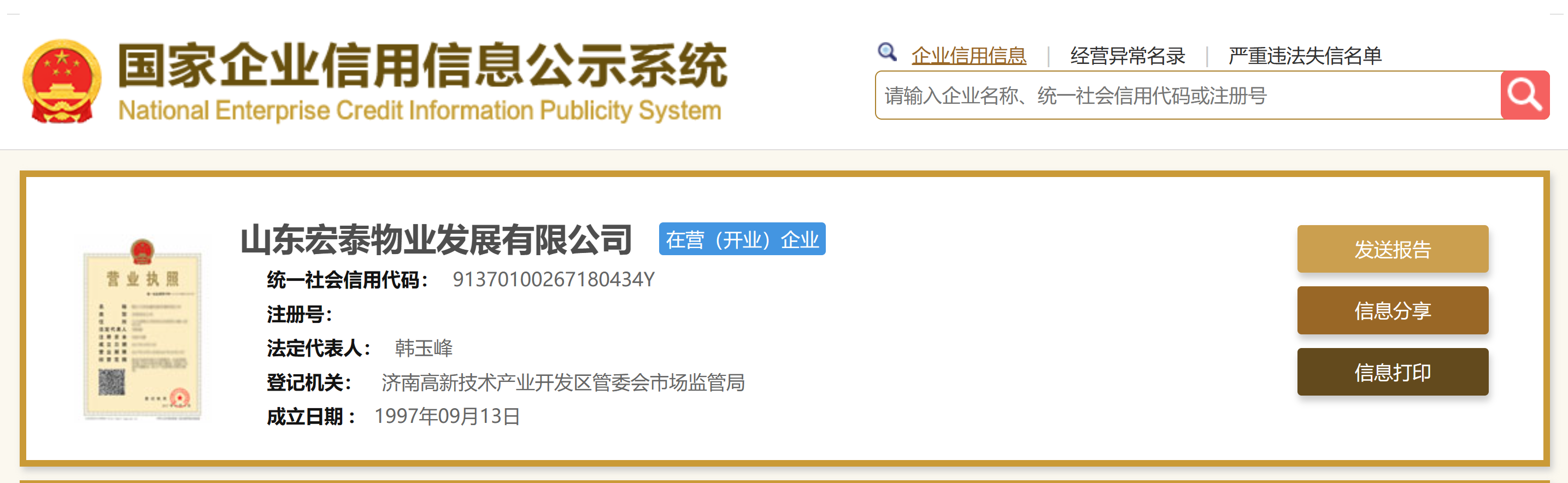 据查,山东宏泰物业发展有限公司成立于1997年9月13日,法定代表人为韩玉峰,注册资本为7400万元,经营范围包括物业管理;房地产经纪;住房租赁;非居住房地产租赁;柜台、摊位出租;仓储设备租赁服务等。该公司由天津雅潮企业管理咨询有限公司持股65%, 雅生活未来物业管理服务有限公司持股35%。