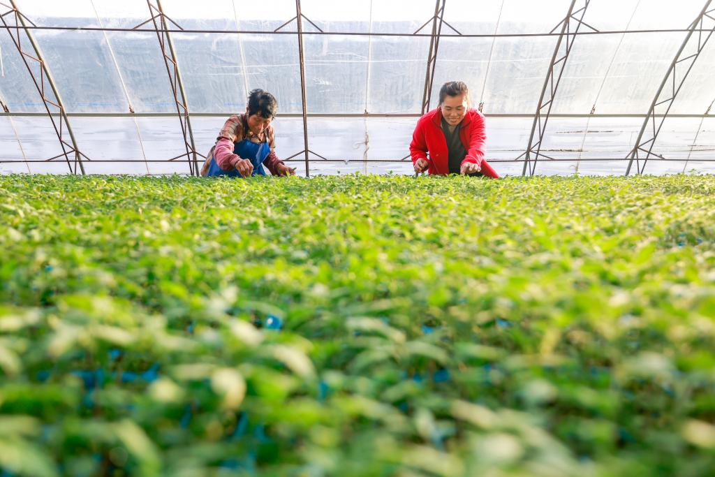 12月26日,唐山市丰南区一育苗基地工人在管护蔬菜苗。