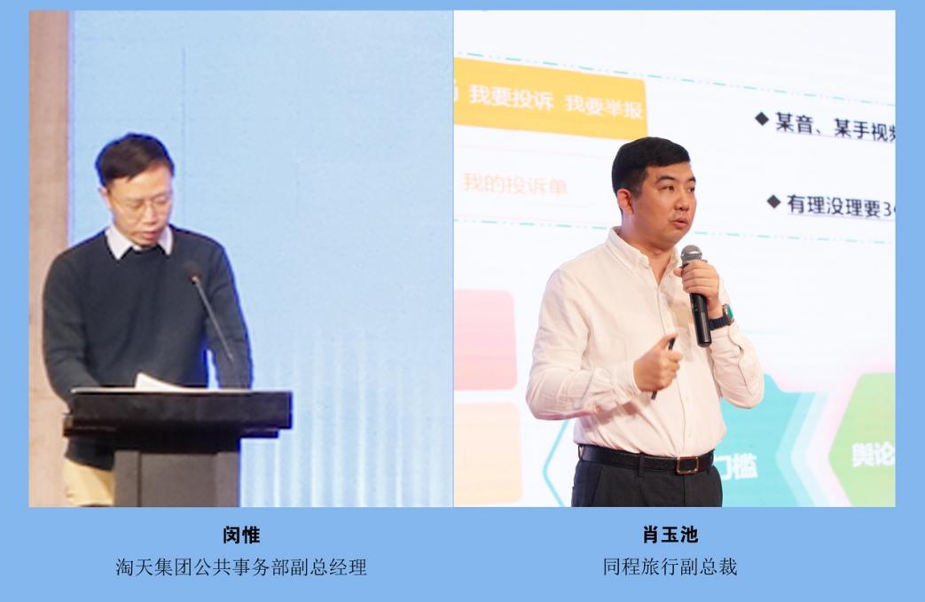 淘天集团公共事务部副总经理闵惟、同程旅行副总裁肖玉池围绕企业在履行社会责任,维护消费者权益方面的工作作了主旨发言。
